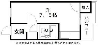 | 間取り | ワンルーム(洋8) | 主要採光面 | 西 |